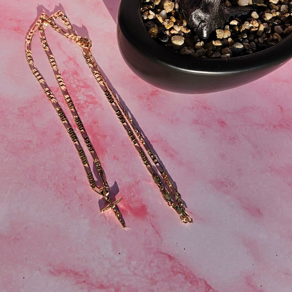 Cruz con cadenita de oro laminado — una pieza elegante y significativa que combina fe, estilo y durabilidad en un solo accesorio.
